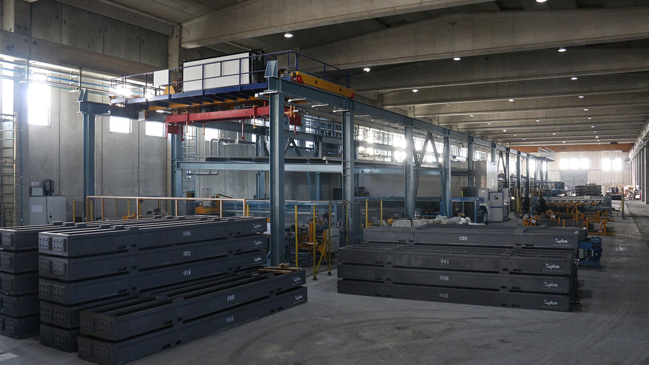 Un sistema computerizzato in grado di gestire e controllare ogni fase del processo produttivo dal getto di calcestruzzo nei casseri alla maturazione in cella fino allo scassero finale. La particolare soluzione impiantistica offre una notevole flessibilità in termini di produzioni alternative.